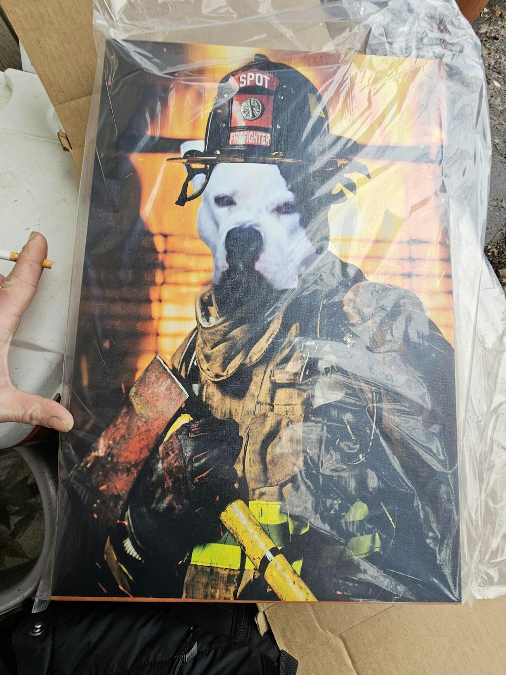 Fantastic job! My boyfriend absolutely loves this gift more than anything in the world. He still can't get over what a great gift it was, how well they shopped his pooches photo in the portrait. It's perfect and we are beyond pleased with the purchase!!