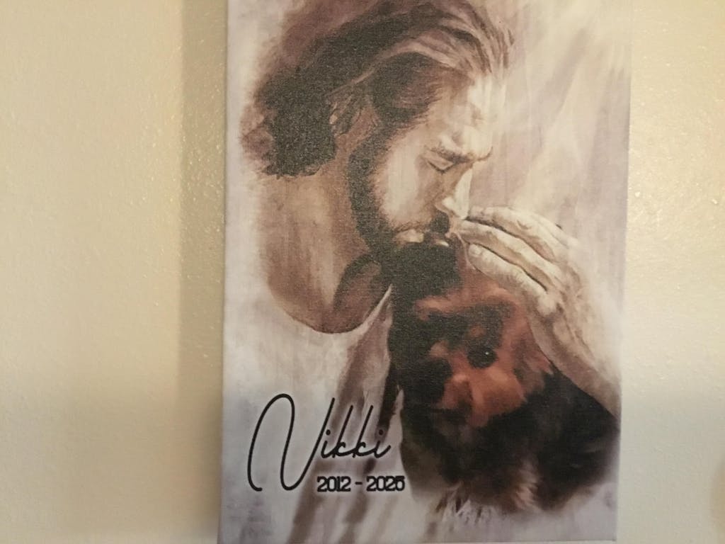 This canvas is absolutely beautiful! We lost our precious little fur baby Nikki a few months ago. This canvas of Jesus gave me some comfort. Every day it’ a reminder that she is no longer suffering that she is in the hands of Jesus. If you are considering on purchasing this canvas, do not hesitate. You will not regret your decision. It’s absolutely beautiful and comforting.