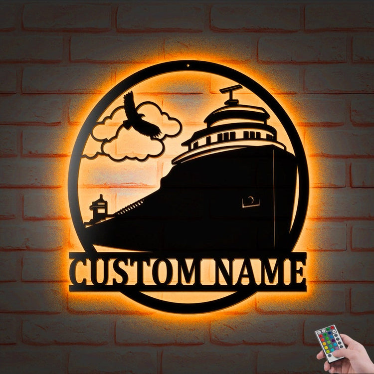 Lake Freighter Ship Personalized Led Lights Metal Wall Art, Custom Boat Ship Decoration Hanging for Home