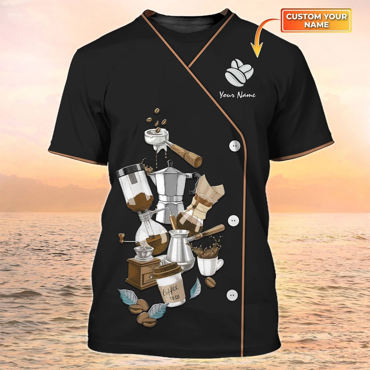 Barista Shirt Coffee Tools Set 3D All Over Print Shirt Coffee Lover Custom Tshirt For Bartender Barista Gift
