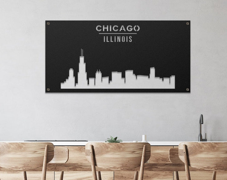 Chicago Skyline Metal Wall Art, Urban Downtown Skyline Art, Cityscape Wall Art, City Skyline Sign, Laser Cut, Custom Name Sign