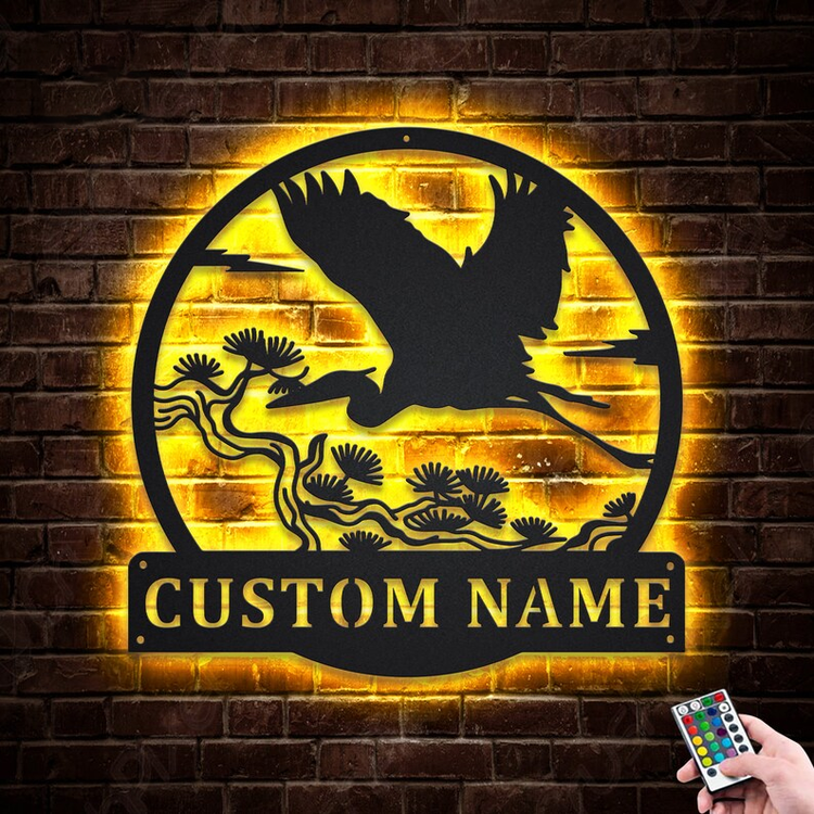 Cranes Bird Metal Sign LED Lights v3, Custom Crane Bird Metal Sign, Crane Bird Neon Sign, Cranes Bird Neon Metal Wall Decor