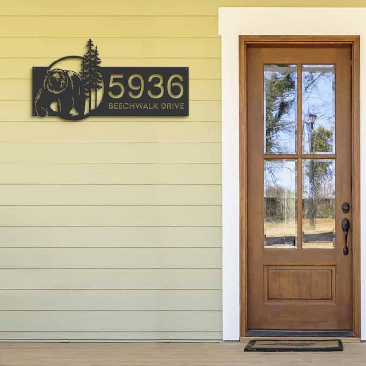 Custom Address Metal Sign, Monogram Bear Forest Scene Wild Life Address Sign Custom Metal Signs, Custom Welcome Sign Gift For New House Owner