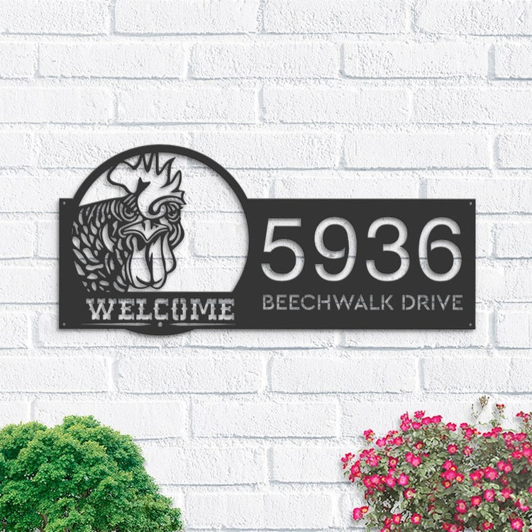 Custom Address Metal Sign, Monogram Personalized Chicken Rooster Farmhouse Animal Ranch Address Sign Custom Metal Signs, Gift For Chicken Farmer