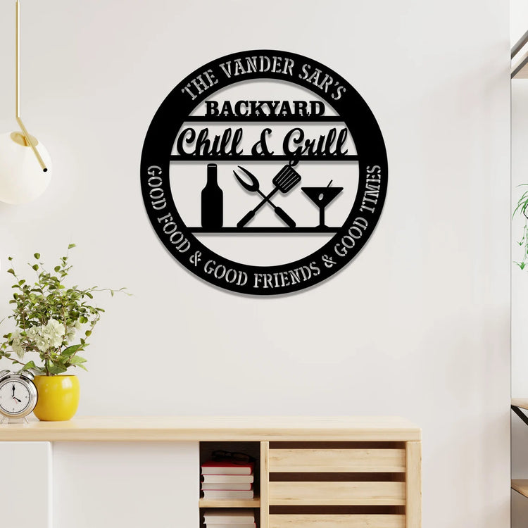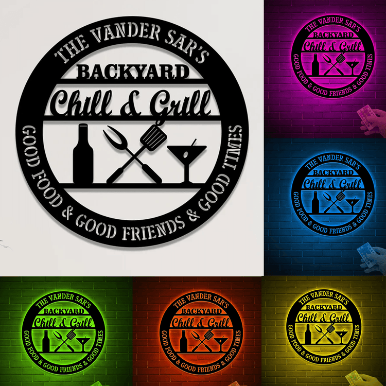 Custom LED Backyard Bar And Grill Metal Sign, Custom Gift For BBQ Dad, Father's Day Gift For Grill Dad, Family Backyard Decor Sign