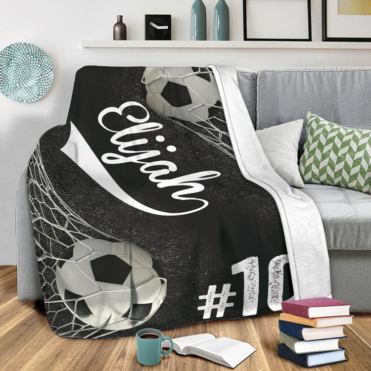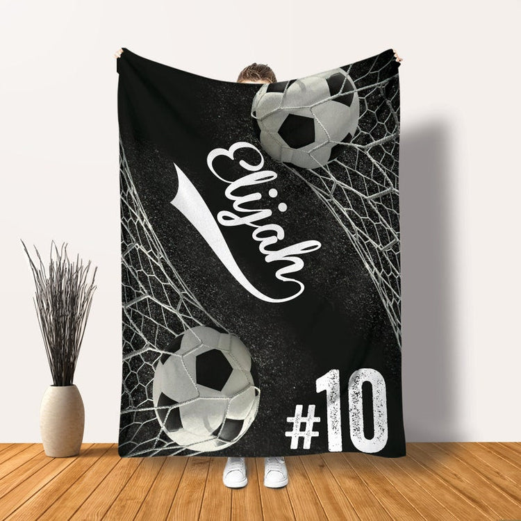 Custom Soccer Ball Net Personalized Name & Number Fleece Blanket, Premium Quality Sherpa Fleece Throw Blankets, Sports Lover Gifts