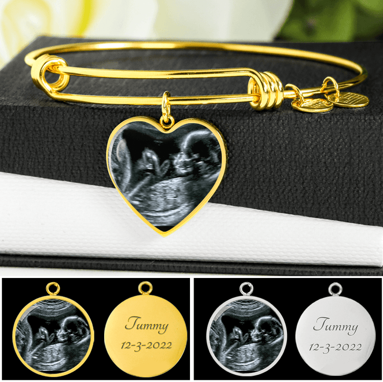 Custom Sonogram Photo Bangle Gift For New mom, First Mother's Day Together Gift For Her, Surprise Gift For Newborn Baby, Sonogram Bracelet