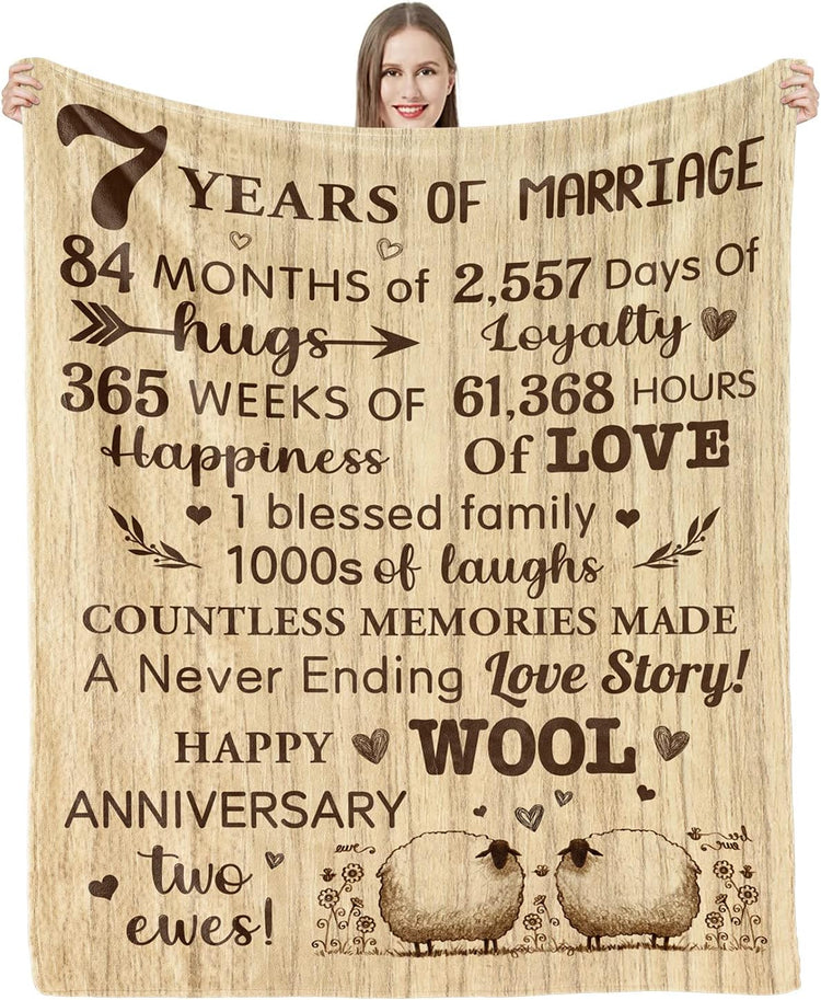 Cute Happy Wool Wedding Anniversary Blanket, 7 Years Of Marriage Gift Idea, Happy 7th Wedding Anniversary Gift For Him Her