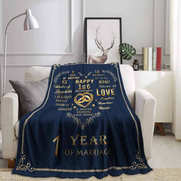Happy 1st Anniversary Blanket, 1 Year Of Marriage Blanket Gift For Wife And Husband, Calculating 1 year Wedding Anniversary Gift Idea