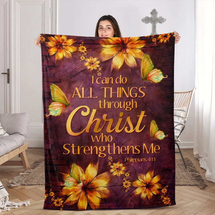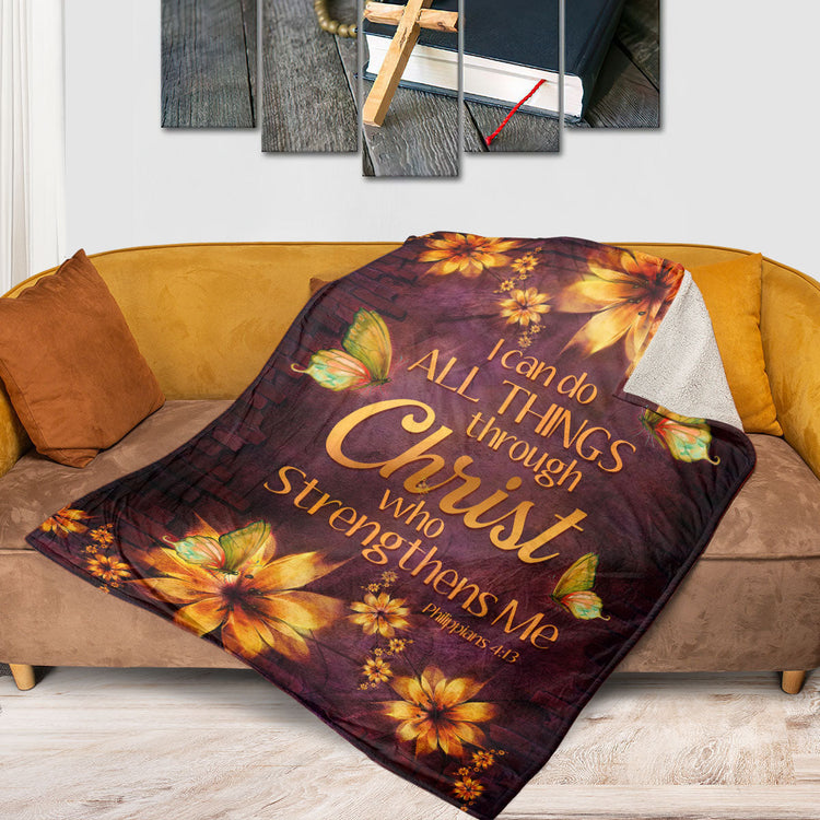 Jesus Fleece Blanket | I Can Do All Things Through Christ | Philippians 4:13 | Flower And Butterfly
