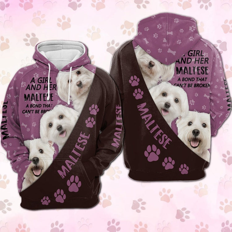 Maltese A Girl And Her Dog 3D Hoodie, Maltese Hoodie 3D Hoodie, Maltese Lovers, Dog Hoodie