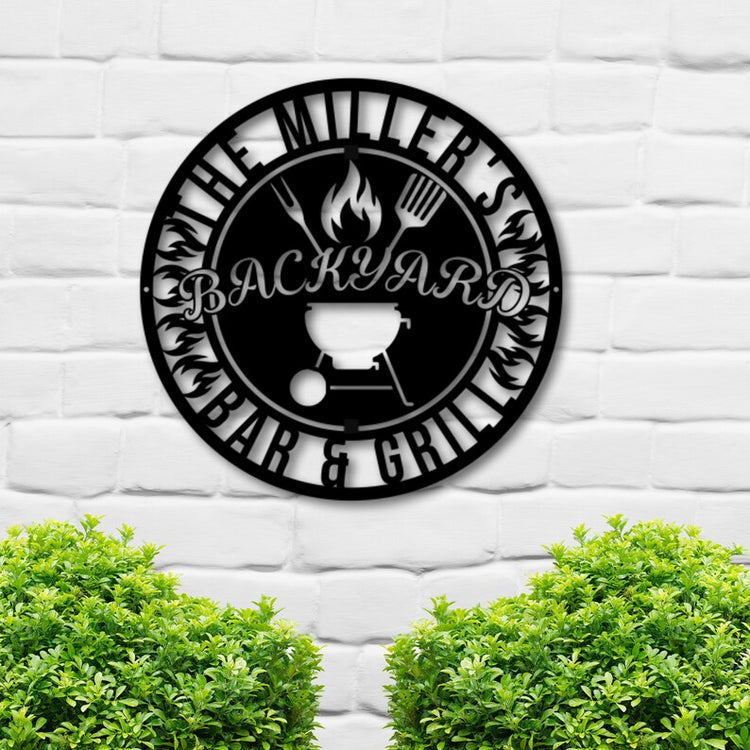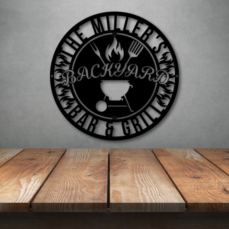 Metal Bar and Grill Sign, Bar and Grill Sign, Backyard Sign, BBQ Sign, Personalized Bar and Grill Sign, Outdoor Sign, Home Bar Sign