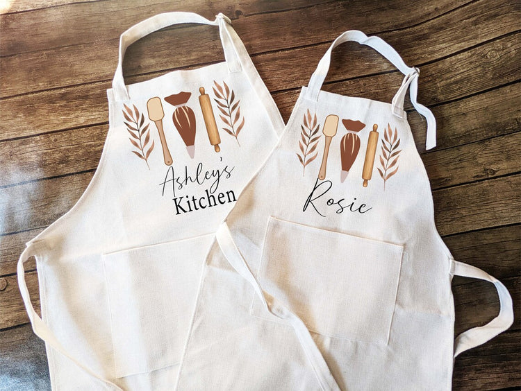 Mommy and me Matching apron for kids Adult with Pocket personalized adult apron kids birthday gift Baking Apron Custom Cooking Apron