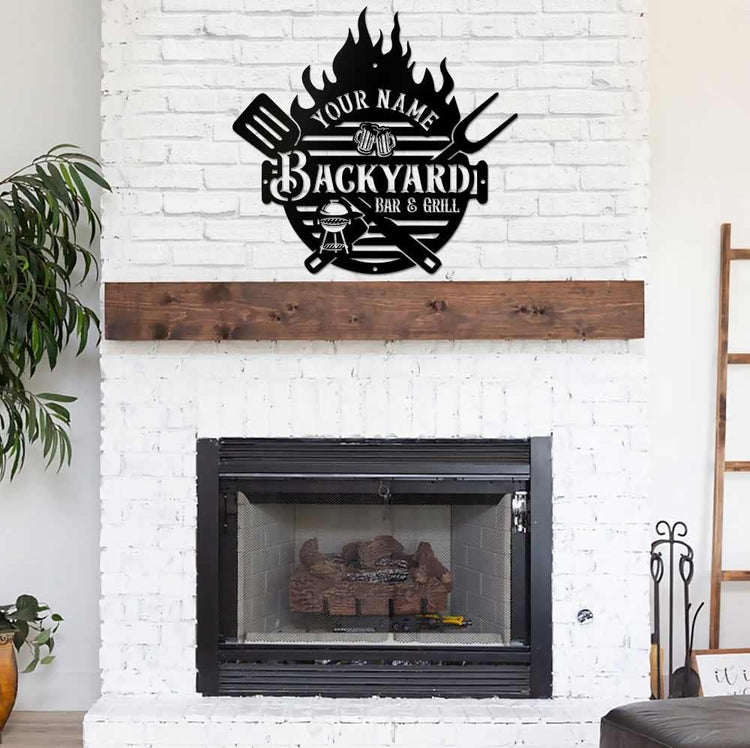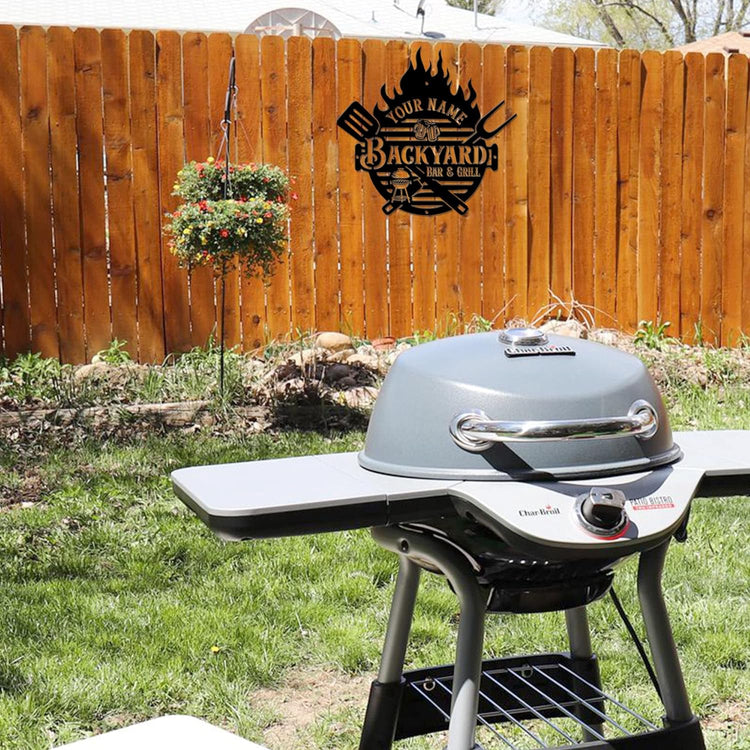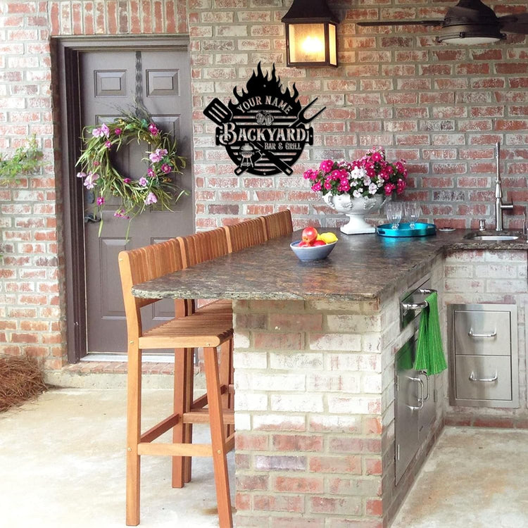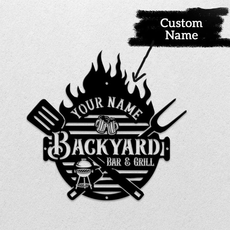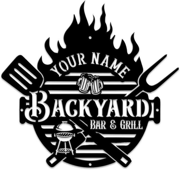 Outdoor Custom Metal Sign Grill Gift For Dad, Personalized BBQ Metal Sign With RGB Led Light, Back Yard Bar And Grill Metal Sign