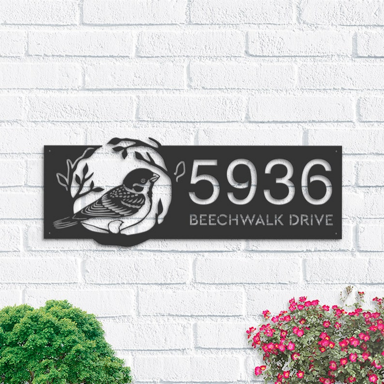 Personalized Bird On Tree Branch Metal Address Sign House Number, Hanging Address Plaque, Yard Sign