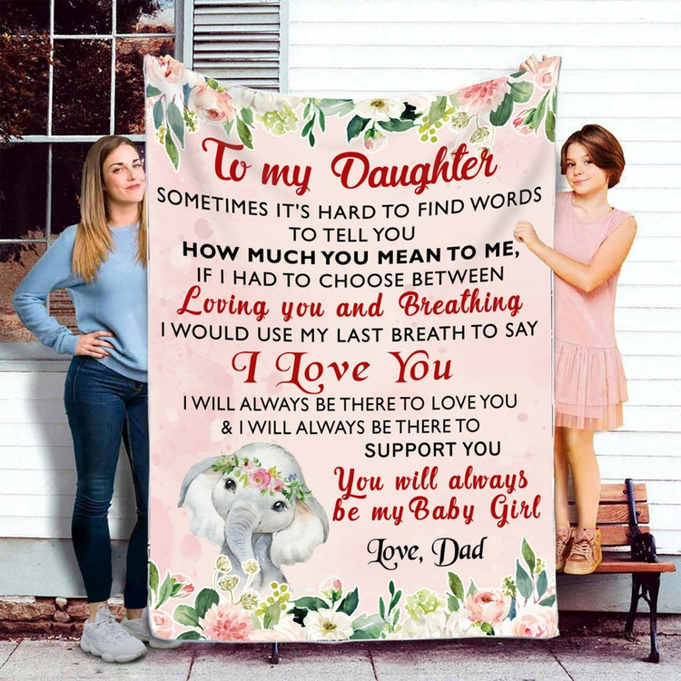 Personalized Blanket for Daughter From Dad, Elephant Blanket, Christmas Gift for Daughter, Custom Birthday Gift, Cute Blanket For Kids.