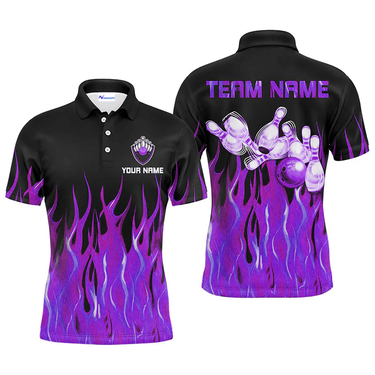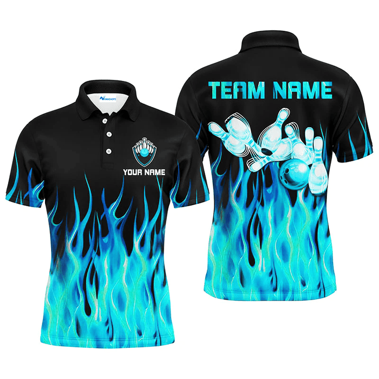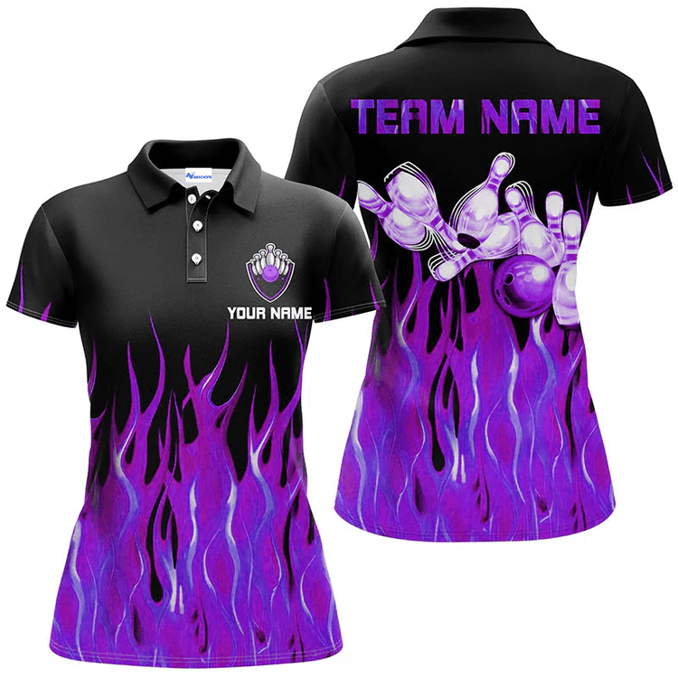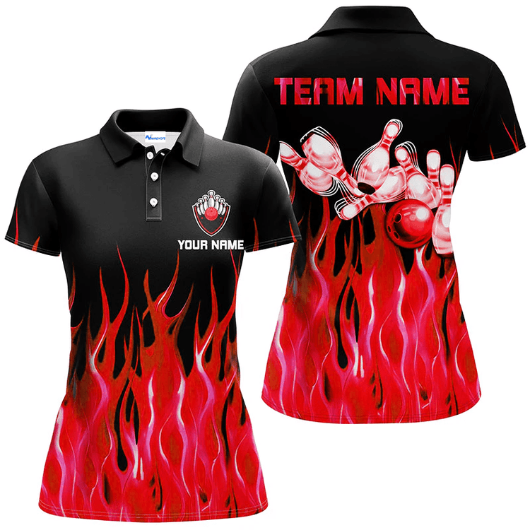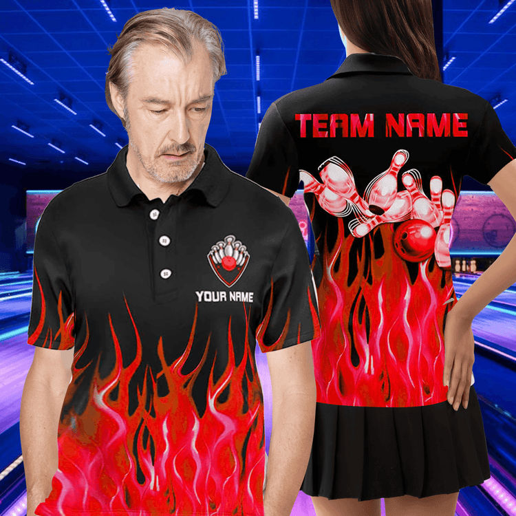 Personalized Bowling Flame Team Polo Shirt, Red Flame Bowling Men And Women Polo Shirt, Custom Bowling Team Name Shirt Gift For Bowling Lover