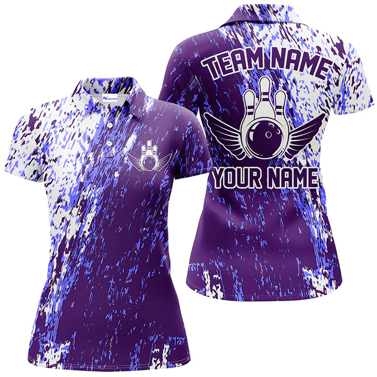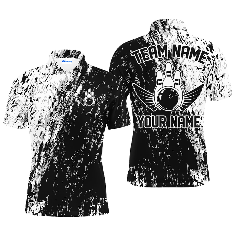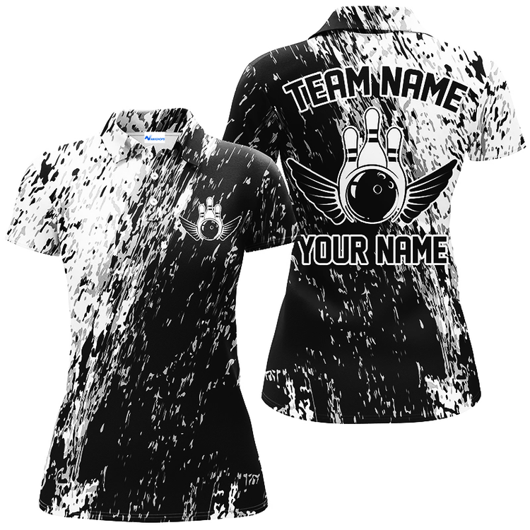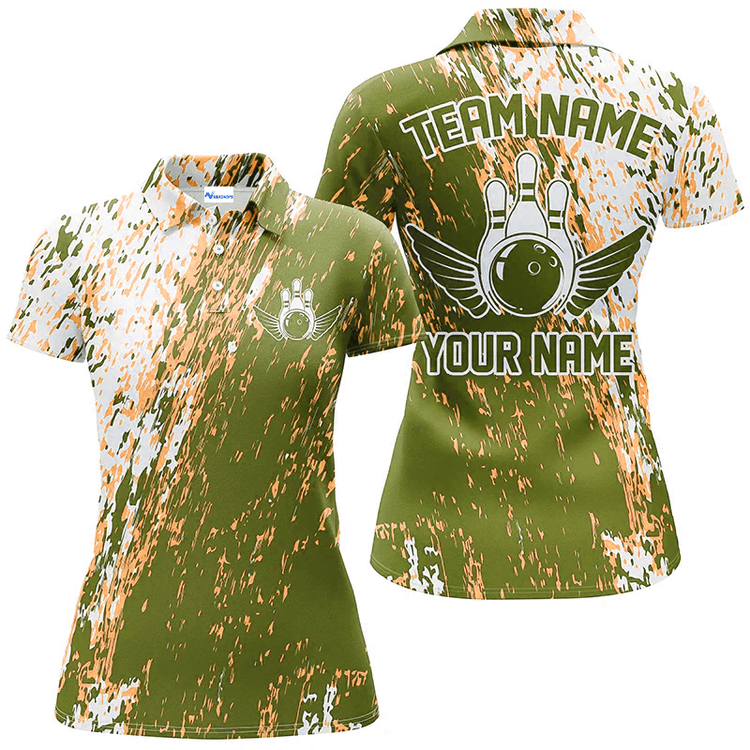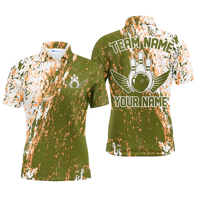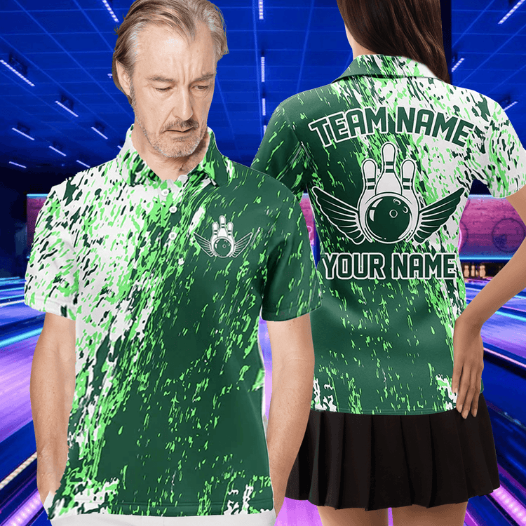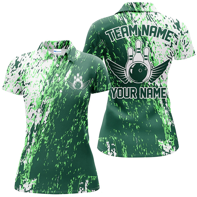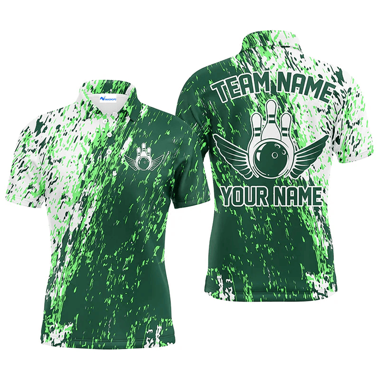Personalized Bowling Wings Green Splash Pattern Polo Shirt, Custom Team Name Polo Shirt For Men And Women, Bowling Team Uniform For Bowling Lovers