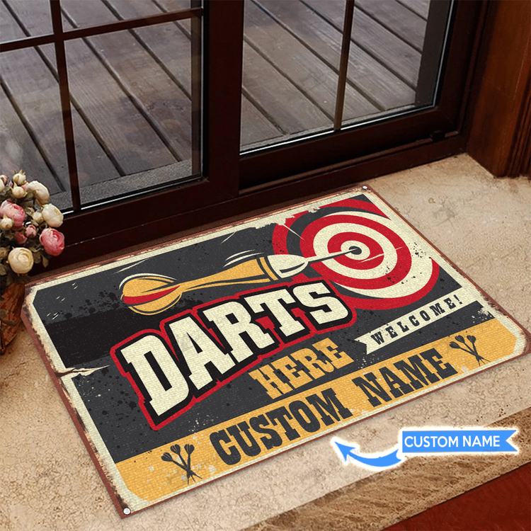 Personalized Darts Here Custom Name Doormat, Welcome Mat, Housewarming Gift, Front door Décor