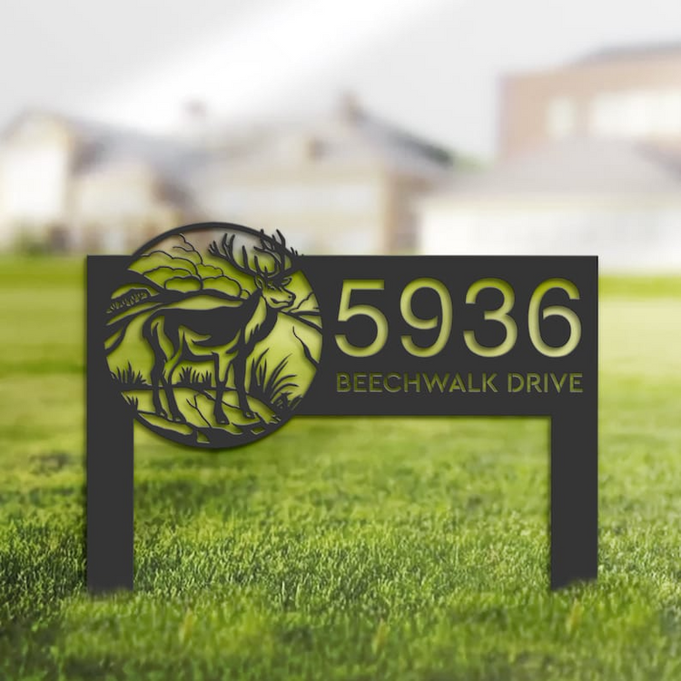 Personalized Deer Male Wild Animal Wildlife Metal Address Sign, Hanging Address Plaque, Yard Sign