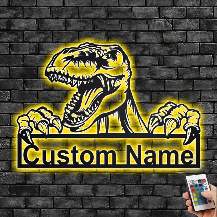 Personalized Dinosaur Metal Sign With Led Light, Custom Dinosaur Metal Wall Art