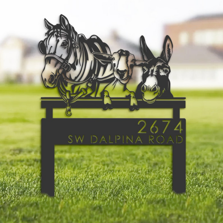 Personalized Goat Cow sheep pig farmhouse farm animals Metal Address Sign, Hanging Address Plaque, Yard Sign
