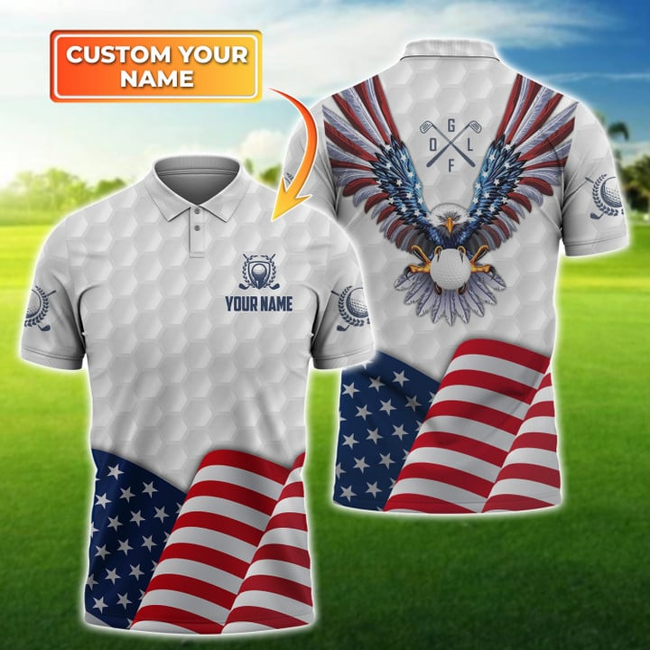 Personalized Golf American Flag And Bald Eagle 3D Polo Shirt