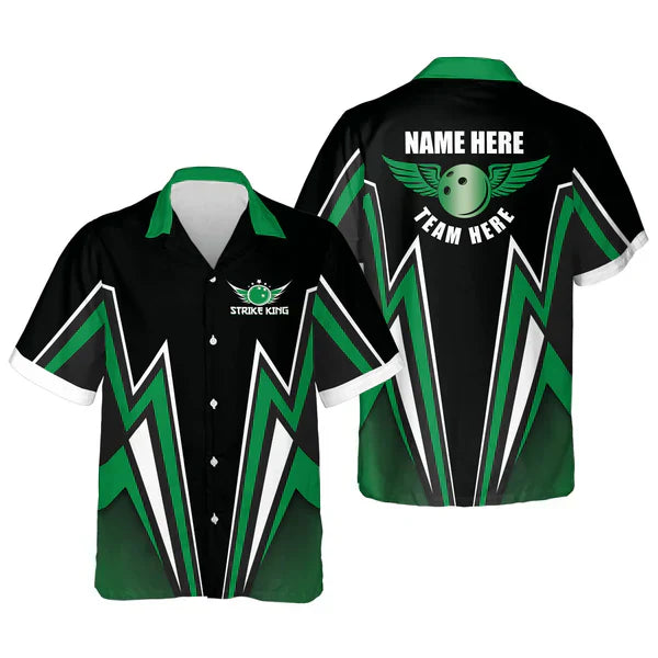 Personalized Green Strike King Hawaiian Shirt, Bowling Team Matching Outfit, Bowling Shirt Christmas Gift For Bowling Team, Blowing Lover