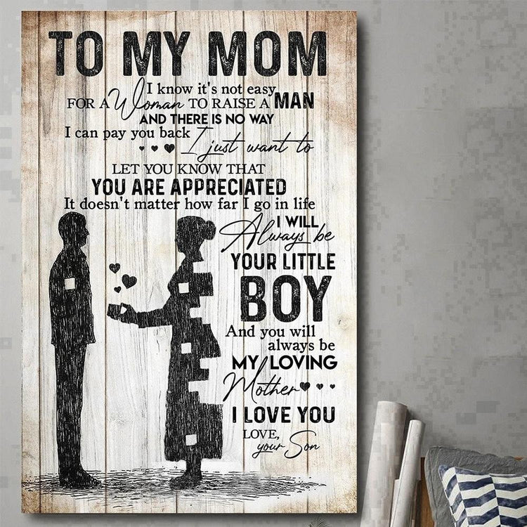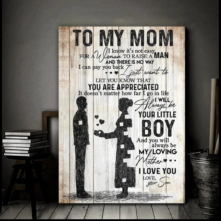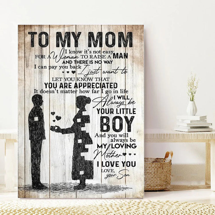 Personalized Light Wooden Pattern To My Mom Canvas Wall Art, Mother's Day Custom Gift From Son - Your Little Boy