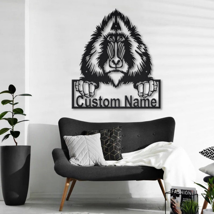 Personalized Mandrill Monkey Metal Sign With LED Lights, Custom Mandrill Metal Sign, Monkey Name Kid Sign