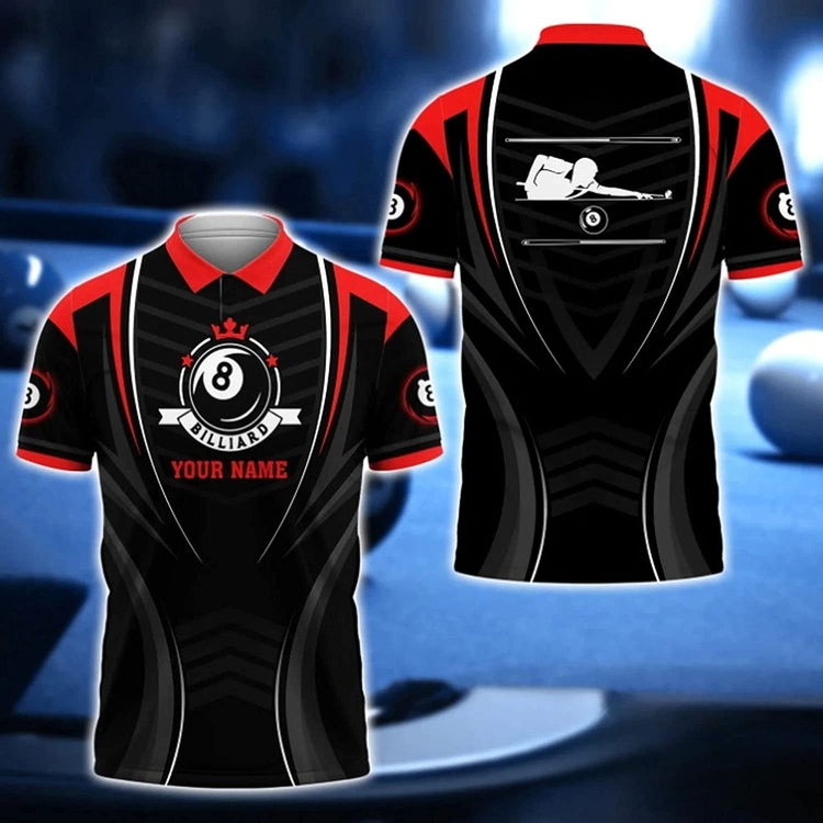 Personalized Men's Pool 8 Ball 3D Polo Shirt, Custom Billiard Polo Shirts, Gifts for Billiards Teams, Billiard Polo Shirts Short Sleeve