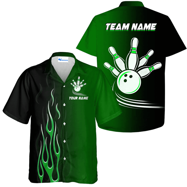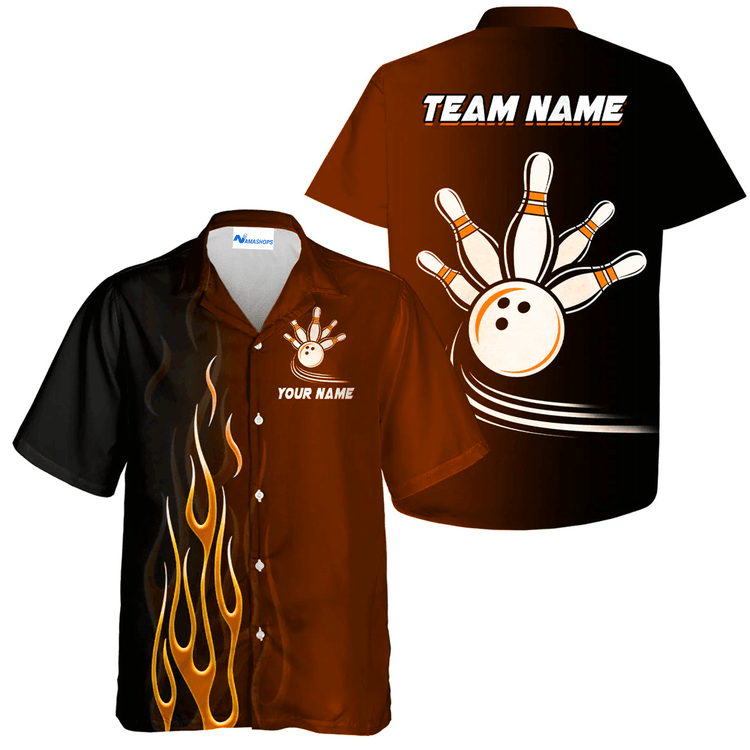 Personalized Pink Flame Bowling Shirt, Bowling Team Name Hawaiian Shirt, Bowling Christmas Gift For Bowling Team Member, Bowling Lover