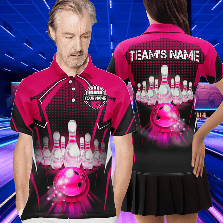 Personalized Pink Neon Bowling Form Polo Shirt, Bowling Polo Shirt For Men And Women, Custom Bowling Team Name Unisex Uniform For Bowling Lover