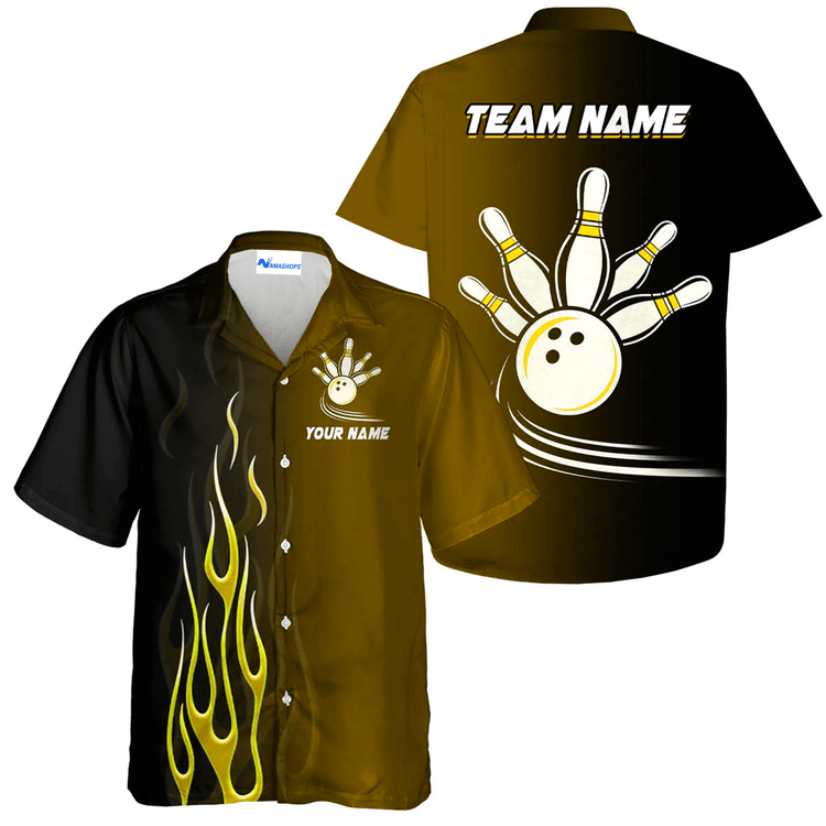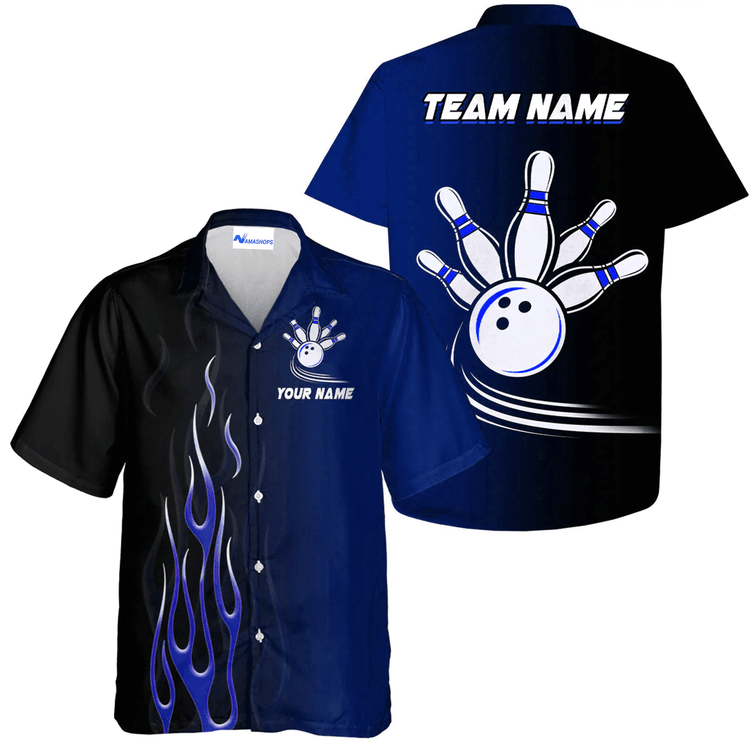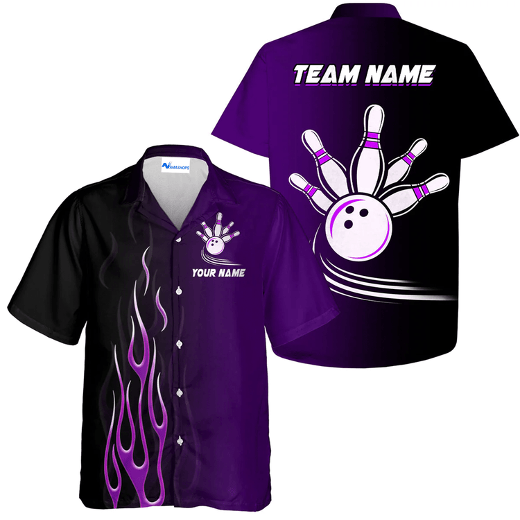 Personalized Purple Flame Bowling Shirt, Bowling Team Name Hawaiian Shirt, Bowling Christmas Gift For Bowling Team Member, Bowling Lover
