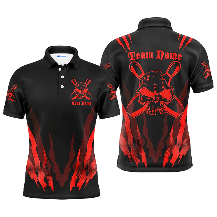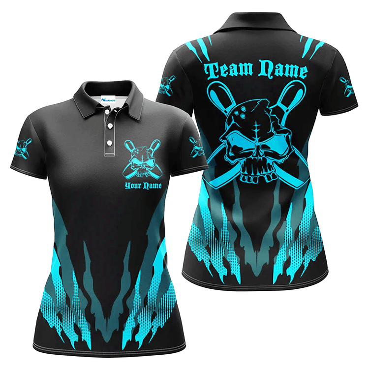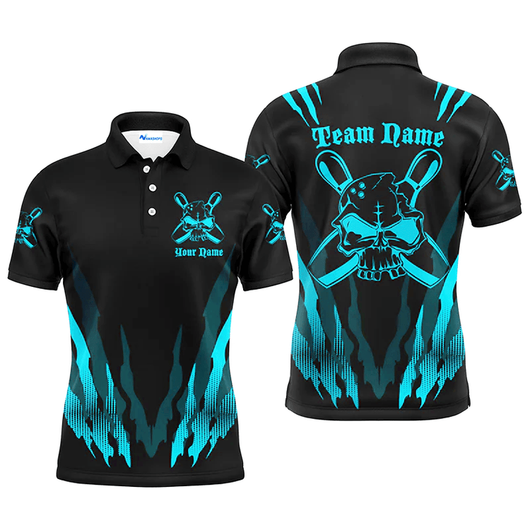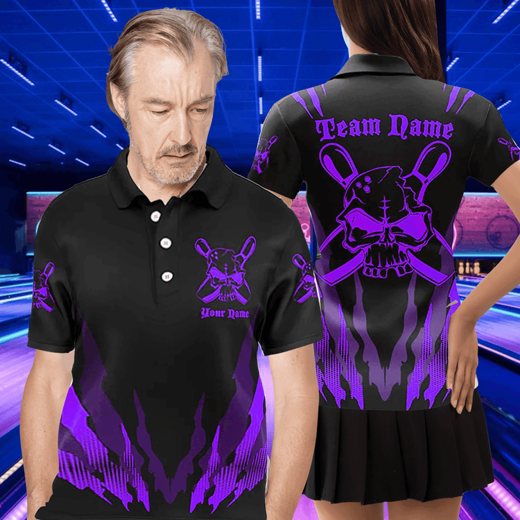 Personalized Purple Skull Bowling Team Polo Shirt, Men And Women Bowling Polo Shirt, Custom Bowling Team Name Shirt Gift For Bowling Lover