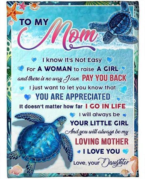 Personalized Sea Pattern To My Turtle Mom Fleece Sherpa Blanket, Mother's Day Custom Gift From Daughter - I Will Always Be Your Little Girl