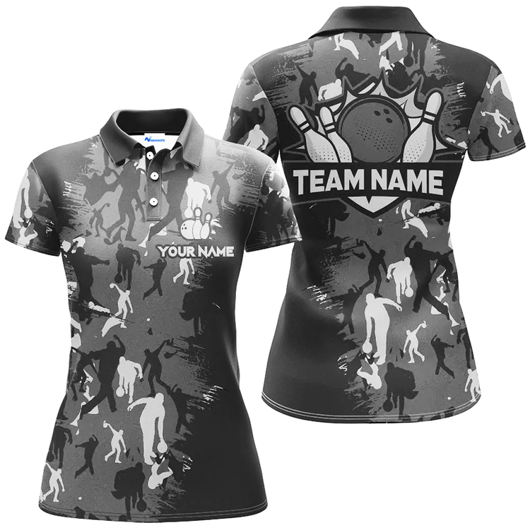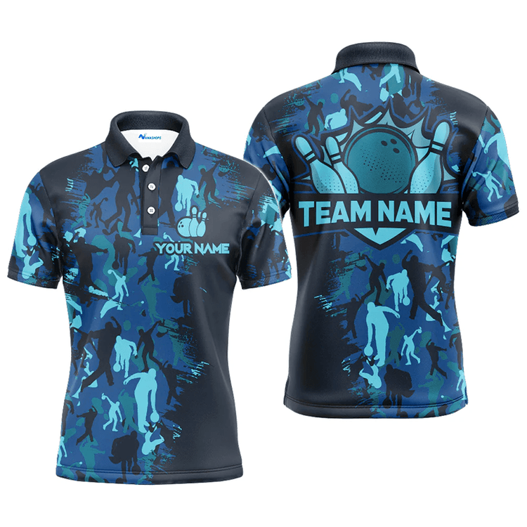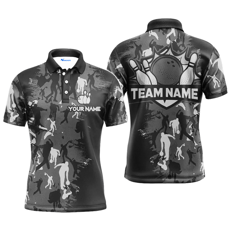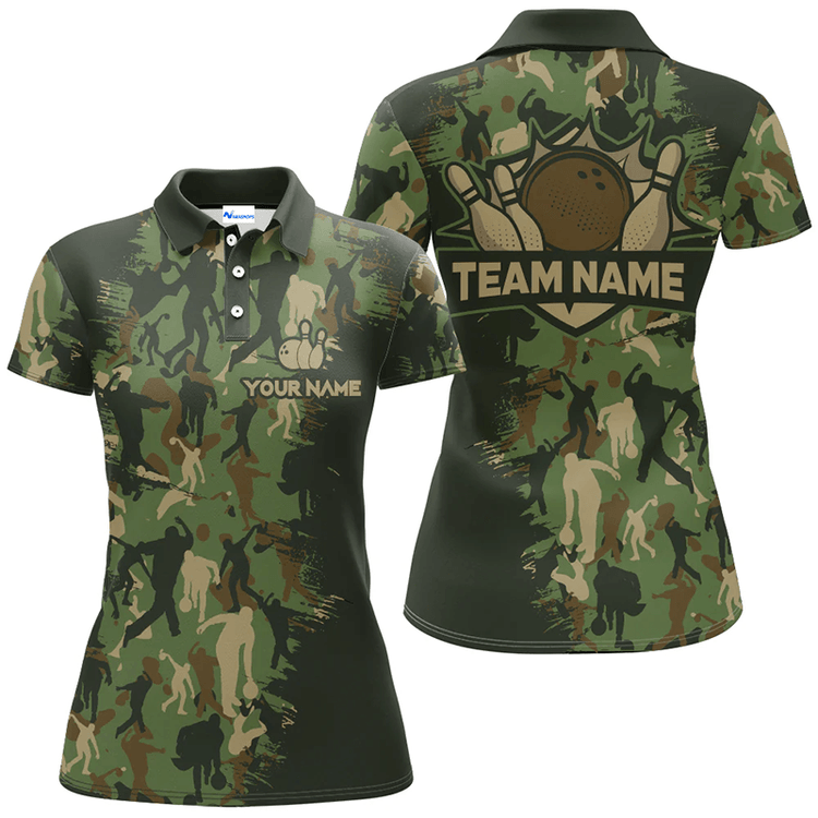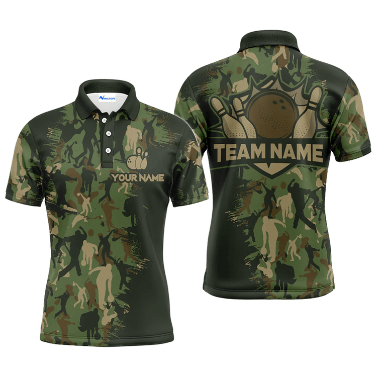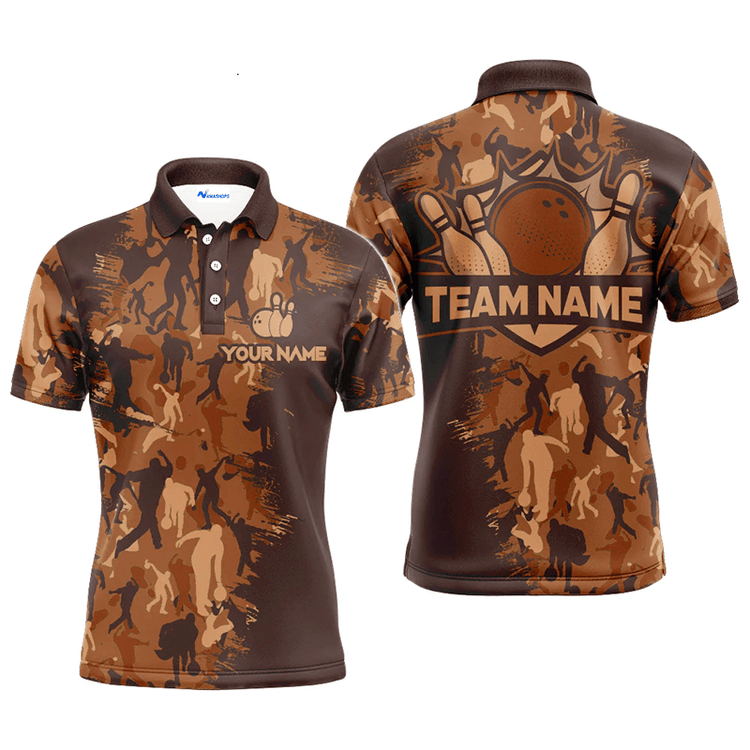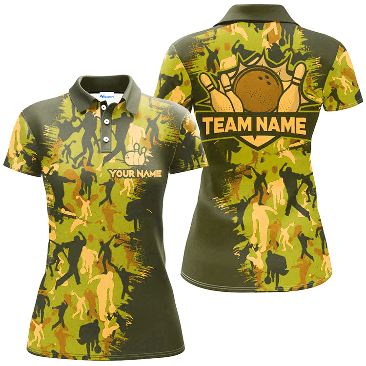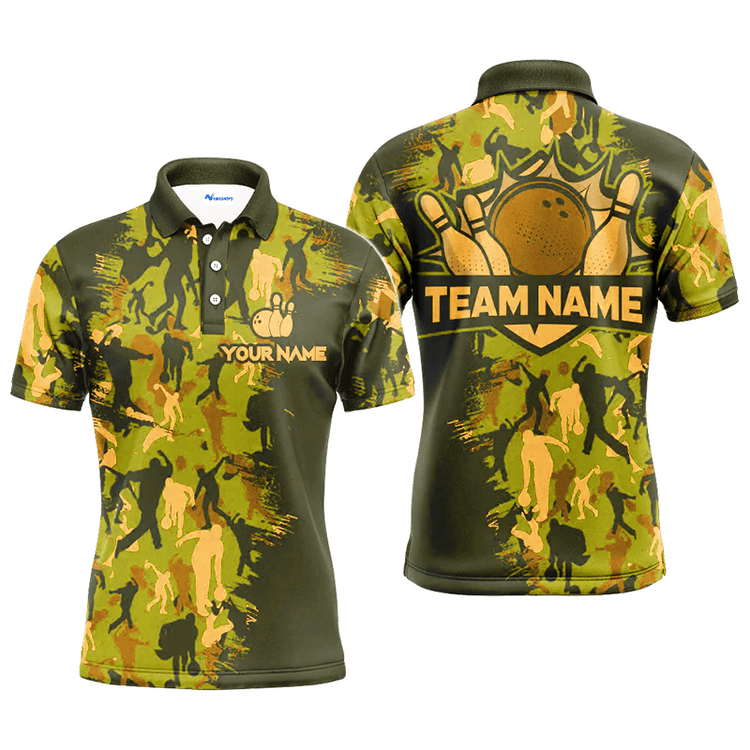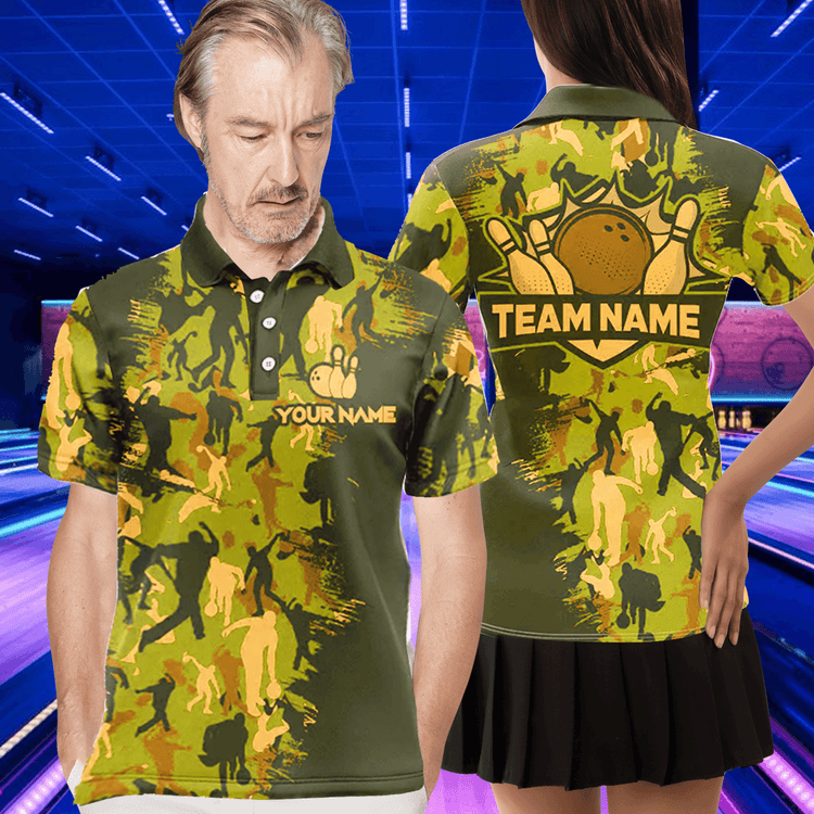 Personalized Yellow Camo Bowling Pattern Polo Shirt, Bowling Team Polo Shirt For Men And Women, Custom Bowling Shirt Gift For Bowling Lovers