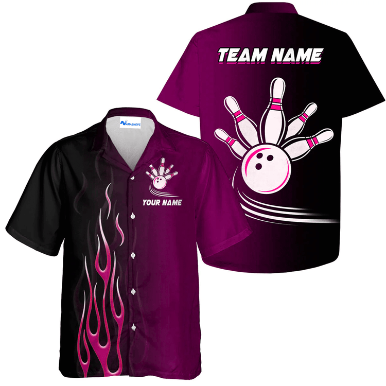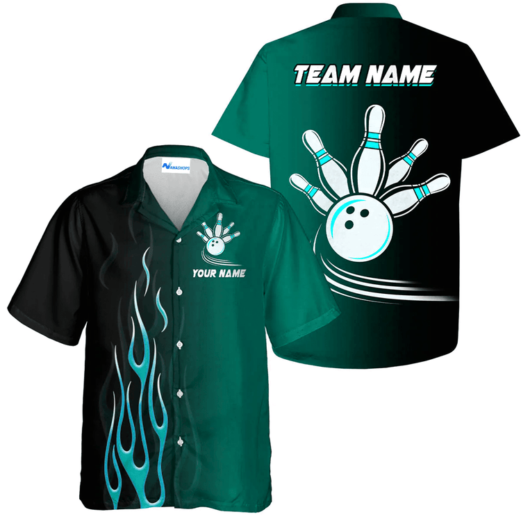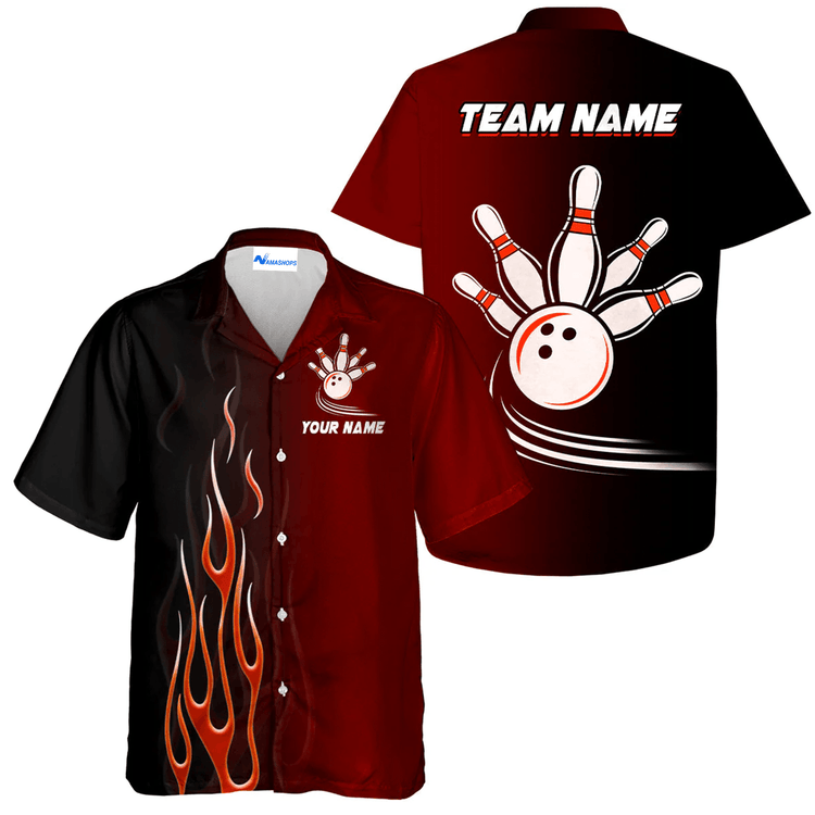 Personalized Yellow Flame Bowling Shirt, Bowling Team Name Hawaiian Shirt, Bowling Christmas Gift For Bowling Team Member, Bowling Lover