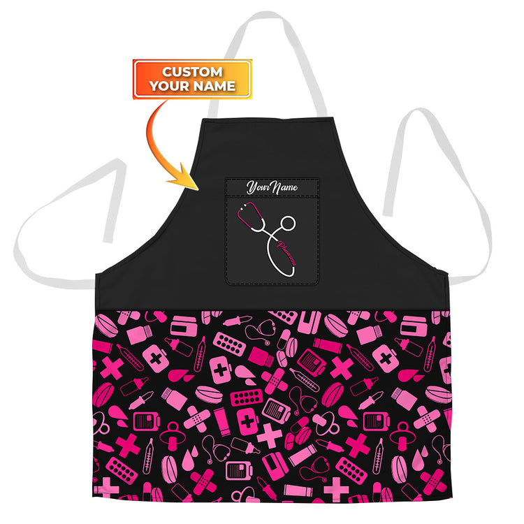 Pharmacy Tools Pattern Medical Apron Custom Pharmacist, Pharmacy technician Apron Black Pink
