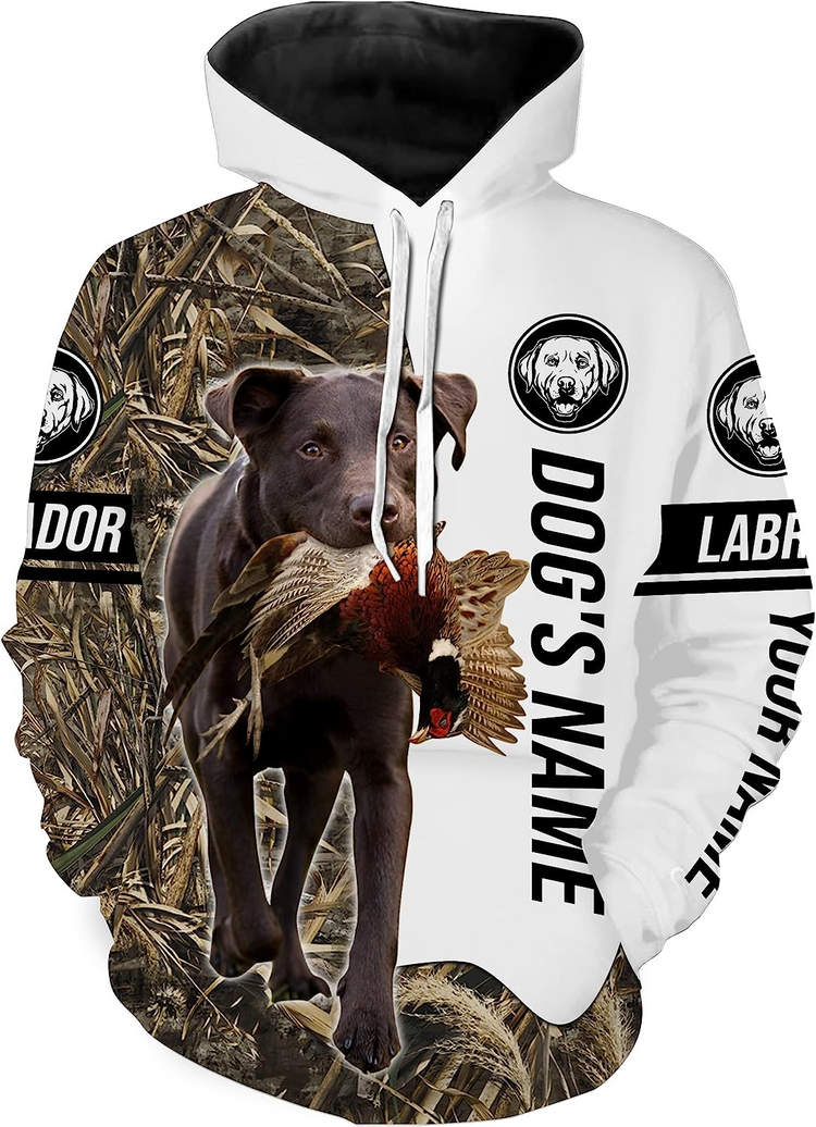 Pheasant Hunting with Chocolate Labrador Retriever Dog Custom Name Camo Full Printing Shirts
