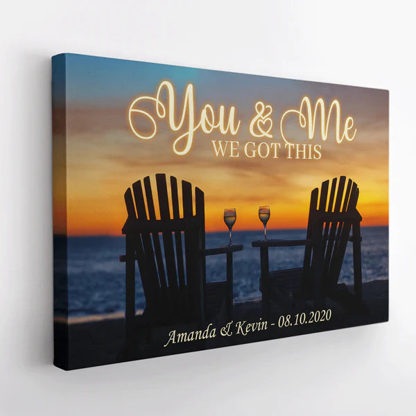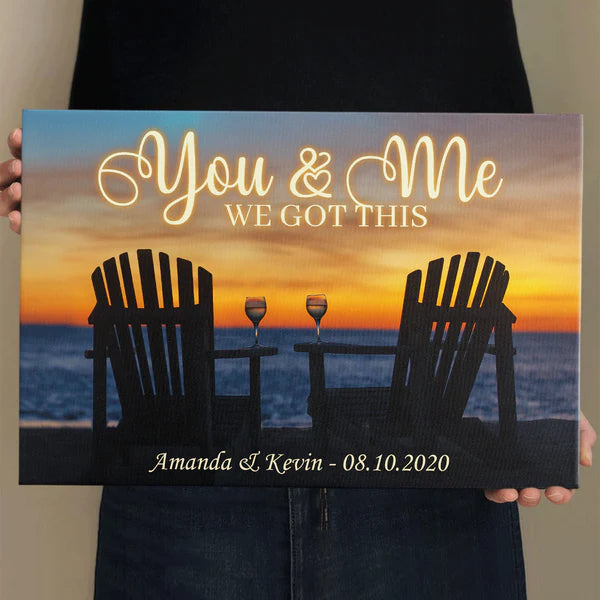 You And Me, We Got This, Custom Couple Name And Anniversary Date, Sunset Background Canvas Wall Art